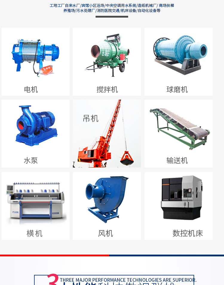 應(yīng)用范圍:紡織機(jī)械,傳輸設(shè)備,生產(chǎn)設(shè)備,風(fēng)機(jī)水泵,印染印刷等相關(guān)機(jī)械設(shè)備。