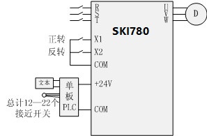2.SKI780的運(yùn)行指令由單板PLC給出,決定正轉(zhuǎn)和反轉(zhuǎn)。頻率由面板電位器給出;