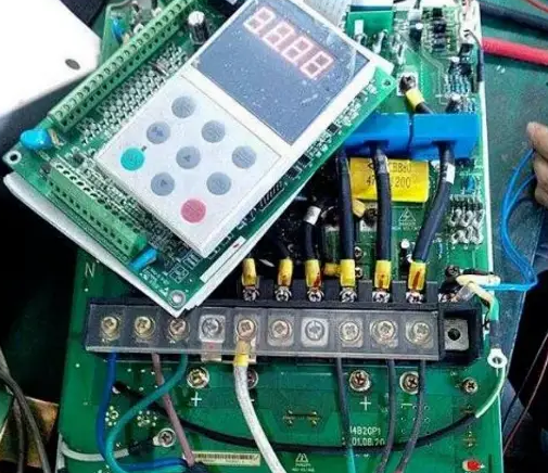 4、主直流回路的儲(chǔ)能電容容量容量下降或失容后,直流回路電壓的脈動(dòng)成分增加,在變頻設(shè)備啟動(dòng)后,在空載和空載時(shí)尚不明顯,但在帶載起動(dòng)過程中,回路電壓浪起濤涌,逆變模塊炸裂損壞,保護(hù)電路對(duì)此也表現(xiàn)得無所適從。