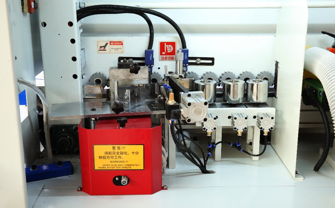 全自動(dòng)封邊機(jī)主要包括機(jī)身、各加工部組、控制系統(tǒng)。機(jī)身部分由上下橫梁、底座組成,其中機(jī)身部分關(guān)系到精確度,上下橫梁,關(guān)系到加工板材能否直線運(yùn)行,確保每個(gè)工位的精密運(yùn)行。封邊機(jī)可分為手動(dòng)曲線封邊機(jī)和全自動(dòng)直線封邊機(jī)兩種。標(biāo)準(zhǔn)機(jī)型配置為:只具備齊頭,修邊,刮邊,拋光這四個(gè)主要單元。利用感應(yīng)器檢知工件工位從而完成封邊機(jī)的輸送--涂膠--切斷--前后齊頭--上下修邊--上下精修--上下刮邊--拋光等封邊工序。用戶可根據(jù)自己的實(shí)際情況增加雙修,開槽,仿形等工位。