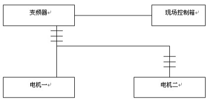 現(xiàn)場為兩臺132KW/660V電機,運用軟起動器啟動時有700A左右的電流,啟動后切換到旁路工作有200A左右的電流。運用后為一拖二,有262KW的負載,電流有300A左右;由于是兩臺電機并聯(lián)運用要留出一定的余量,因而選用315KW/660V的。下圖為控制框圖:
